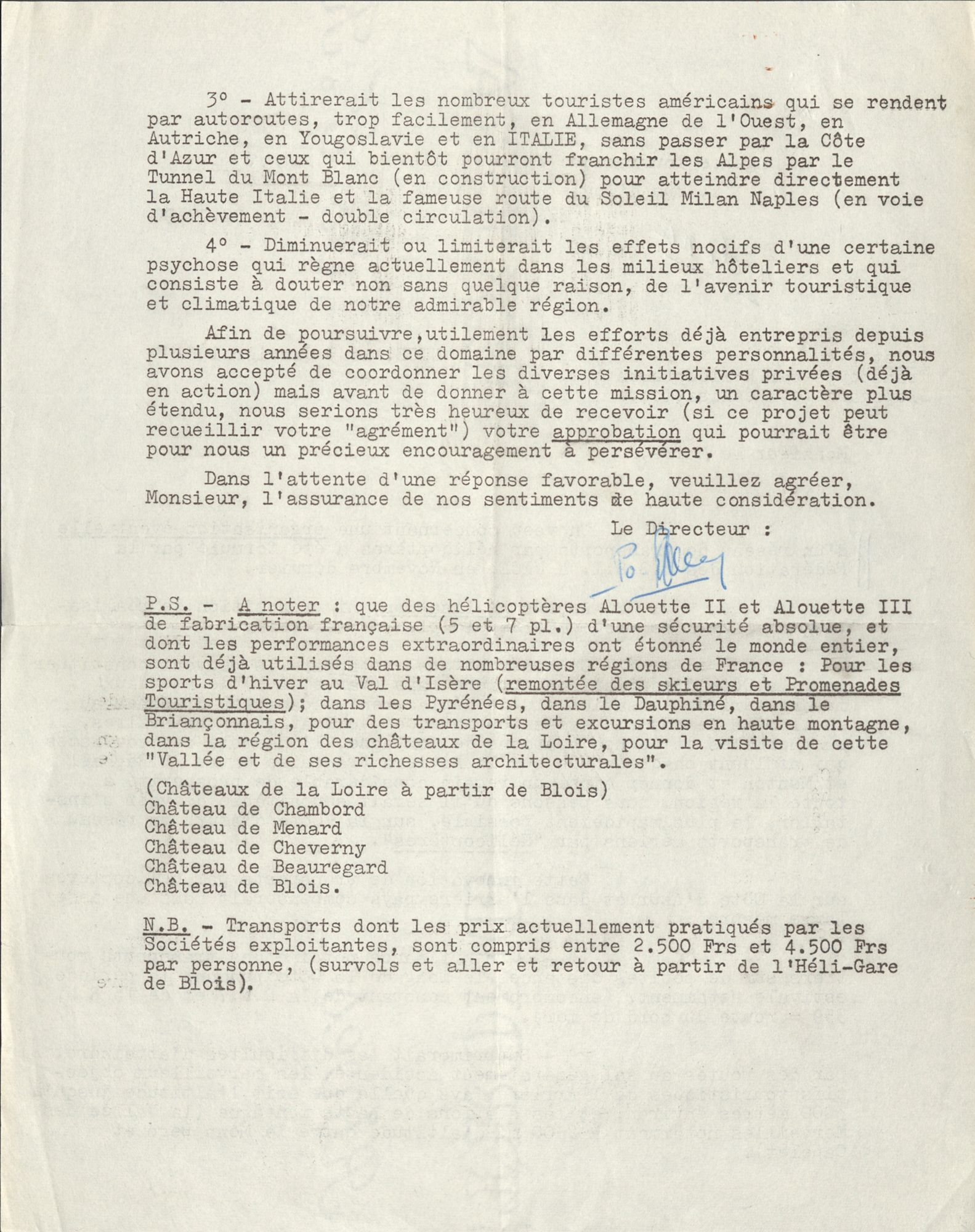 À titre de comparaison, à euros constants, le prix du vol indiqué dans le courrier, entre 2500 et 4500 Francs en, 1961, correspondrait en 2023 à une somme allant de 4500 à 8100€. Une coquette somme !