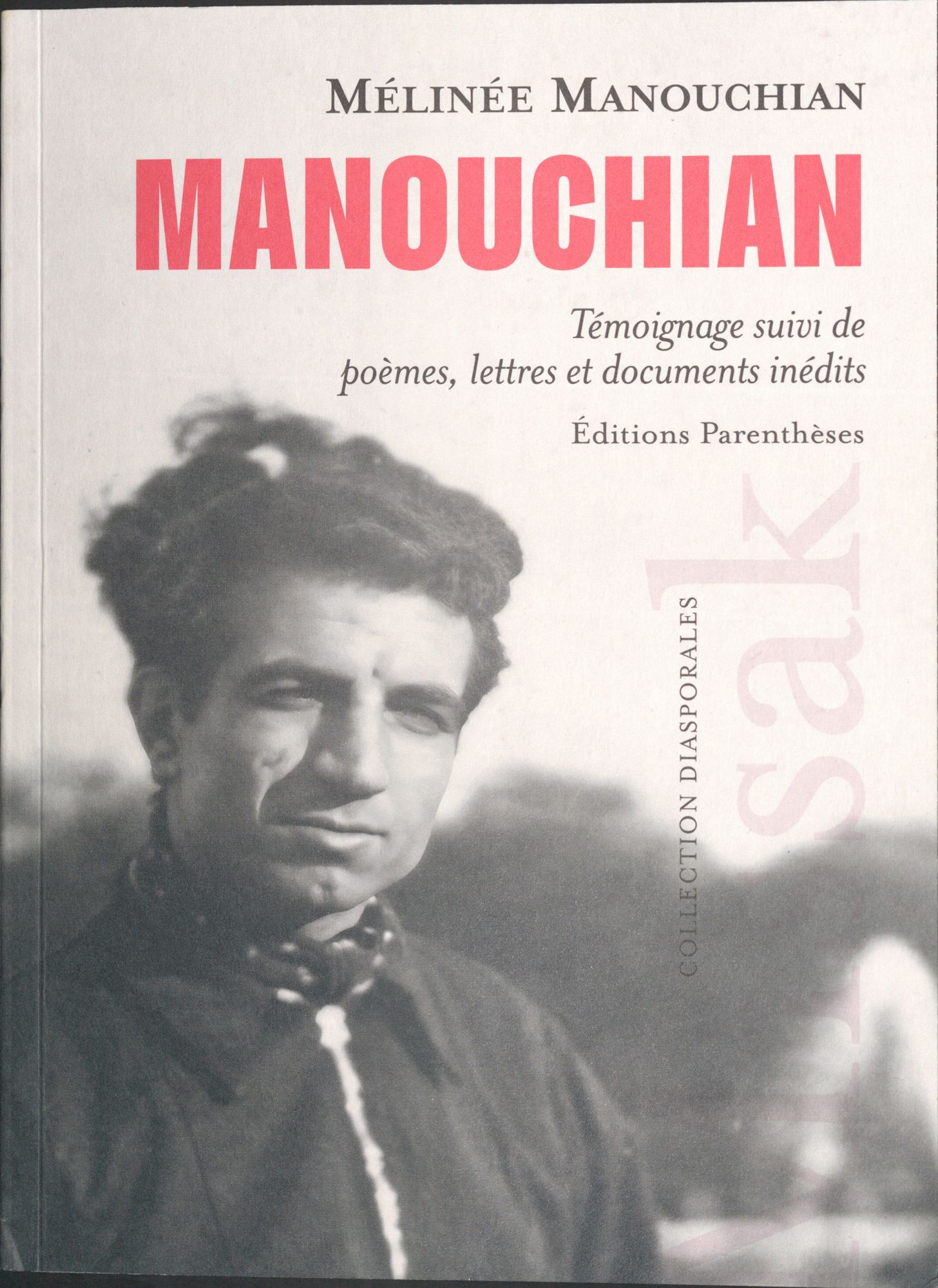 Le second ouvrage s’intitule Manouchian. Témoignage suivi de poèmes, lettres et documents inédits. Cet ouvrage paru aux éditions Parenthèses se distingue du premier, car, sous l’initiative de Katia Guirogassian petite nièce de Missak et Mélinée, il nous plonge dans la mémoire personnelle du couple. À l’intérieur de ce livre, on retrouve la réédition d’un témoignage écrit par sa grand-tante en 1974 dans lequel elle témoigne de la vie de Missak d'une façon très personnelle, évoquant son caractère et sa manière de se comporter au fil des événements de sa vie. Ce témoignage s'accompagne de documents inédits provenant des archives familiales, comme des poèmes de Missak, de la correspondance et des photographies.