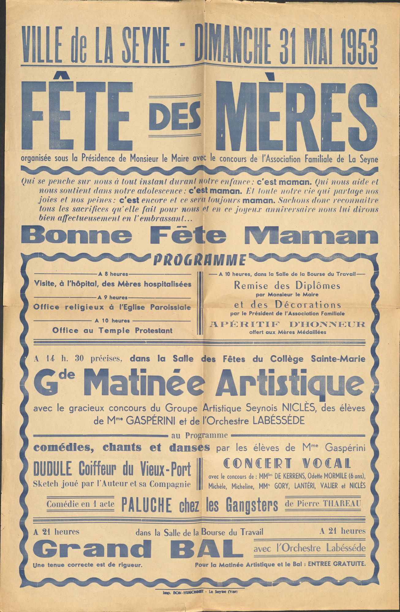 Ces 3 affiches conservées dans les fonds sont riches d'enseignements. Elles montrent d'abord la nature de cette multitude de fêtes locales qui animent la Ville tout au long de l'année et créent de la sociabilité entre ses habitants. Elles permettent aussi de découvrir ou redécouvrir des orchestres, des artistes ou des salles aujourd'hui disparues.
