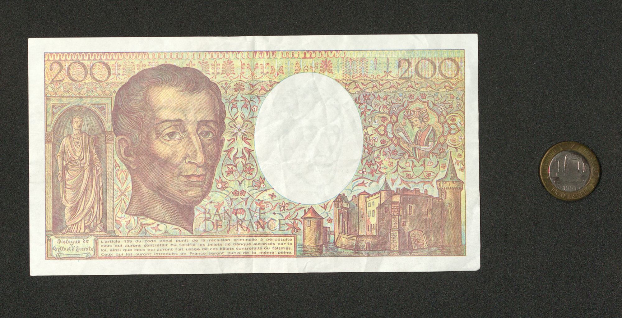 Le billet de 200 francs et un billet type Montesquieu qui a circulé de 1982 à 1996. C'est le premier billet de 200 francs émis depuis 1864.