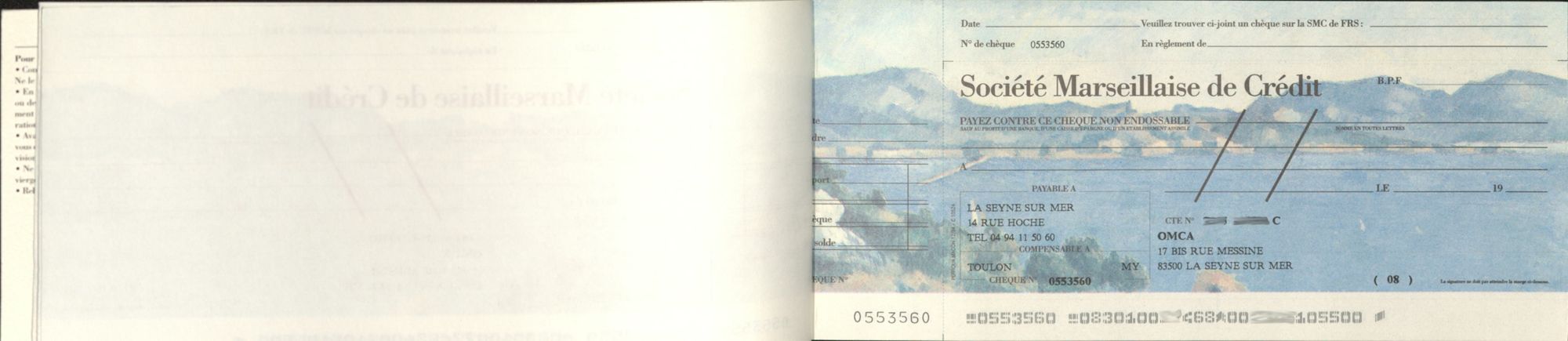 Le chéquier enfin, est tout ce qui est de plus classique, sa forme n'ayant pas fondamentalement changé au cours des dernières décennies. On remarquera toutefois la date pré-renseignée qui commence par 19-