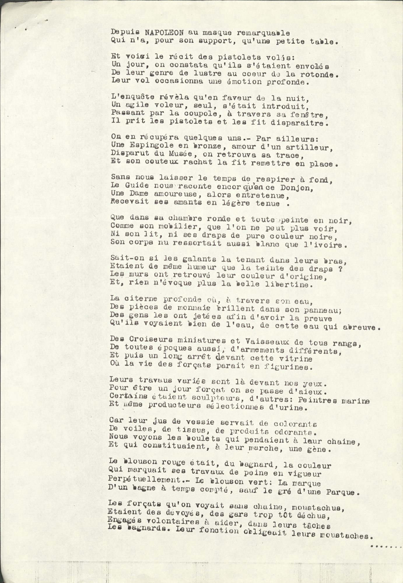 C’est à travers un poème en alexandrin à destination du guide du musée qu’il refait sa visite par le menu et exprime les émotions qu’il a ressenties.